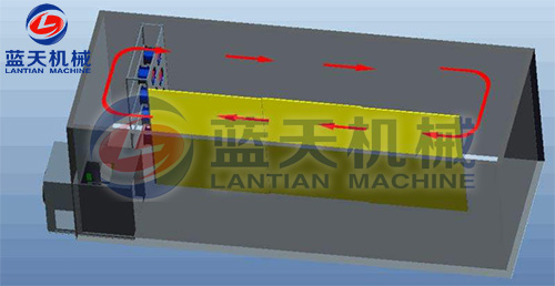 3.為了保證金銀花快速干燥和烘干質量,烘房內要做靜壓腔,讓出風更加均衡,回風設計在烘房頂部正中,讓熱風流動更加均勻順暢。